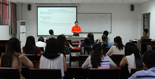 林定波博士认为,日常食物中的类胡萝卜素是影响机体代谢的一种重要物质,而BCO2作为类胡罗素主要代谢途径中一种重要的酶,在决定线粒体功能上起着至关重要的作用。林定波博士通过目前大量的动物实验数据,研究了各项指标的变化情况,详细解释了类胡萝卜素如何通过影响线粒体某些酶的表达来缓解肥胖症状的原因,表明了类胡萝卜素与肥胖之间存在着密切的联系。讲座过程中,林定波博士还与我校师生就食品生物活性成分与慢性代谢疾病的预防、分子营养学等方面的问题进行了讨论。