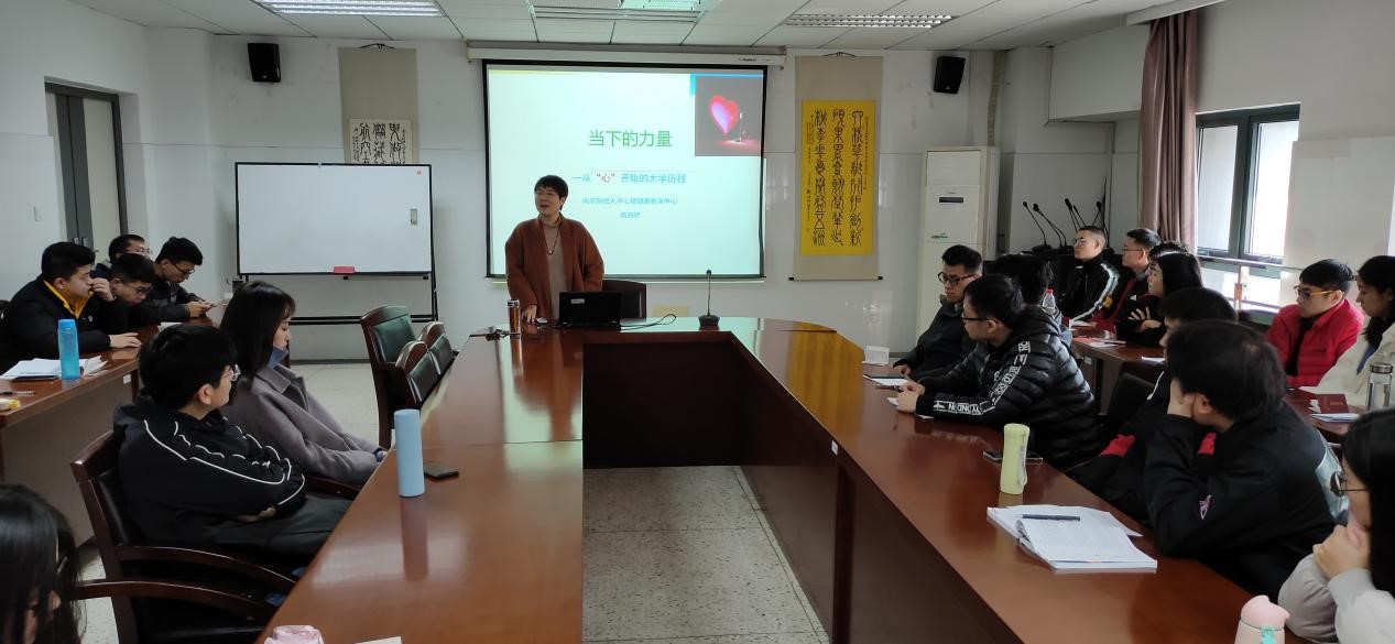 于仙林校区工科楼211会议室举办了题为“当下的力量——从心开始的研究旅程”的心理健康教育讲座。讲座由我校心理健康教育与咨询中心高剑婷老师主讲,全体2019级研究生到场聆听讲座。