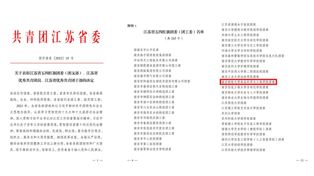 团委获评“江苏省五四红旗团委”荣誉称号。