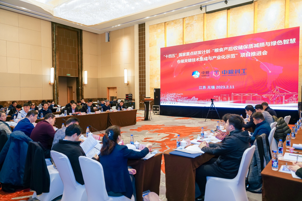 会议开幕式由项目负责人方勇主持。中粮科工股份有限公司首席运营官赵永进致欢迎辞,代表项目承担单位对莅临会议的各位领导、专家表示热烈欢迎,将履行好项目承担单位责任,做好各项保障工作,确保项目的顺利实施。国家粮食和物资储备局安全仓储与科技司管伟举副处长祝贺项目顺利立项实施,同时指出项目研究内容针对粮食产后收储保质减损与绿色智慧仓储关键技术,汇聚了粮食行业顶尖人才与平台,希望通过项目实施配合优质粮食工程与“五优联动”,加快推进粮食产业高质量发展。无锡市科技局副局长刘红表示,将切实履行地方科技部门职责,做好国家重点科技计划项目的服务和保障工作。无锡市粮食和物资储备局副局长薛钦表示,希望项目研发形成的科技成果,能在无锡优先落地生根,为粮食仓储科技创新,保障国家粮食安全做出贡献。