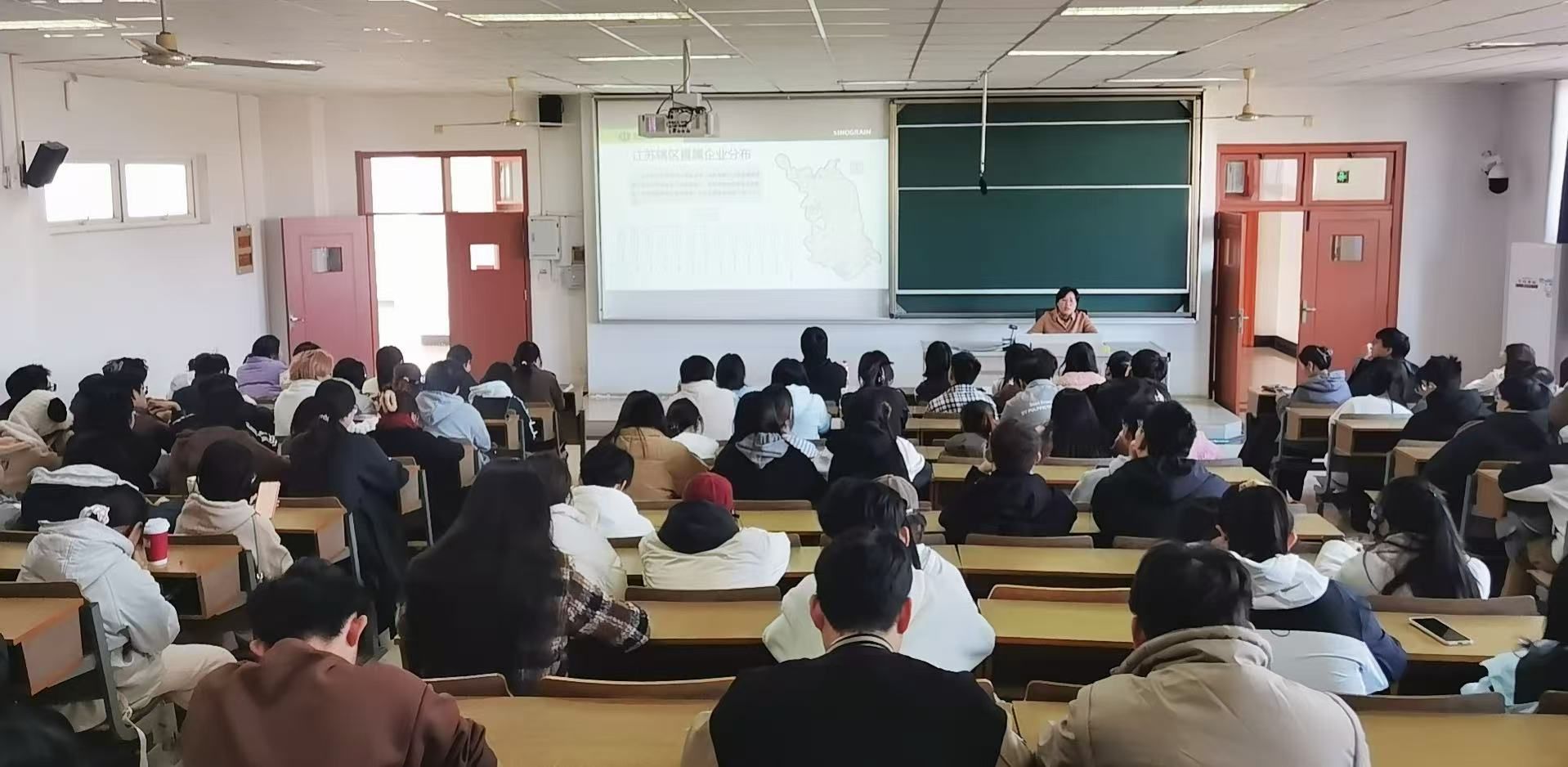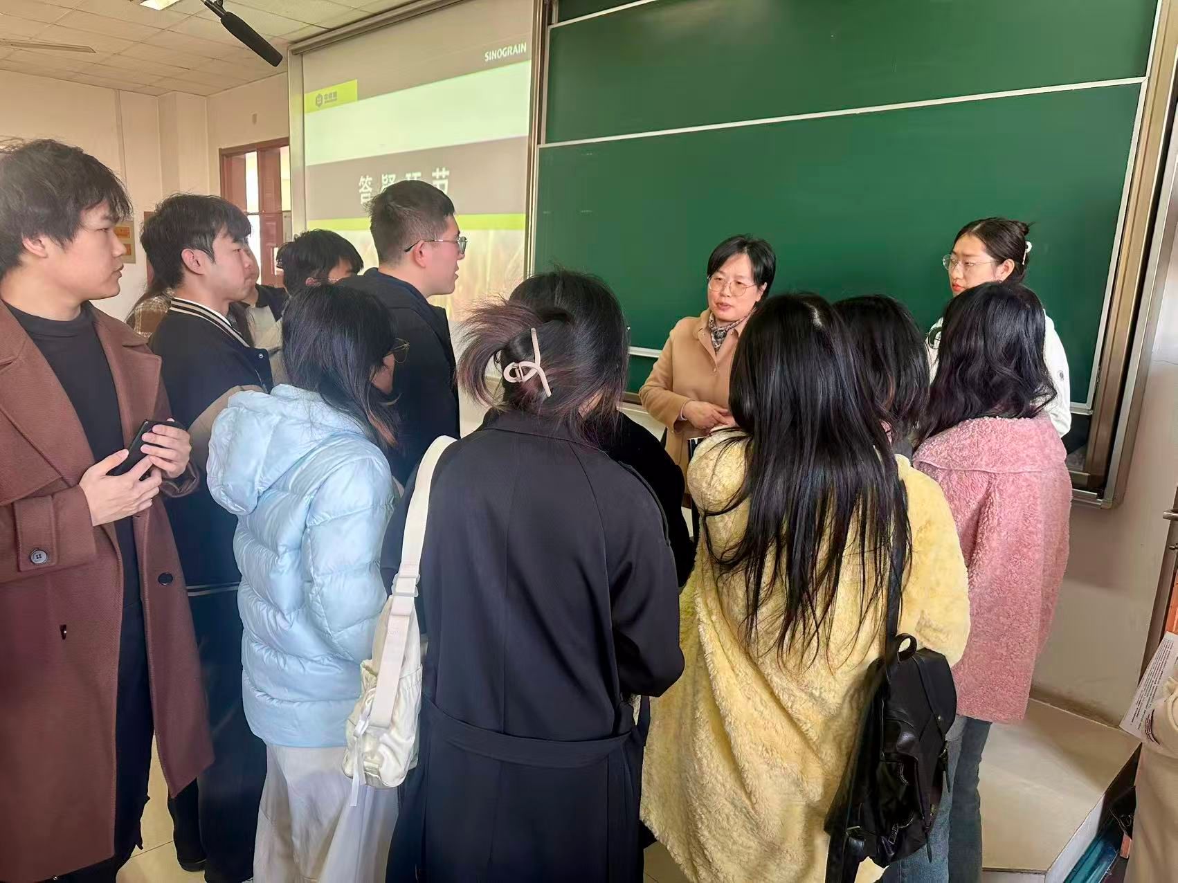 宣讲会上,中储粮江苏分公司党群人事处处长、学院92届校友丁卫华以学姐身份温暖开场:“三十多年前我从南京粮食经济学院毕业,今天回来,既是代表企业招贤纳士,更想以‘老粮院人’的身份回校看看,和学弟学妹们聊聊当下粮食行业的新机遇、好前景。”随后,她详细介绍了中储粮“扛稳国家粮食安全重任”的使命、覆盖全国的业务布局,以及在保障国家粮食供应链稳定、推动绿色储粮技术发展等方面的核心作用;同时重点解读本次招聘方案,就岗位需求、薪资待遇体系、职业晋升路径等同学们关心的内容逐一说明。她结合自身职业历程,分享了从南财毕业后,在粮食行业扎根深耕、积累经验、逐步成长为业务骨干的奋斗故事。