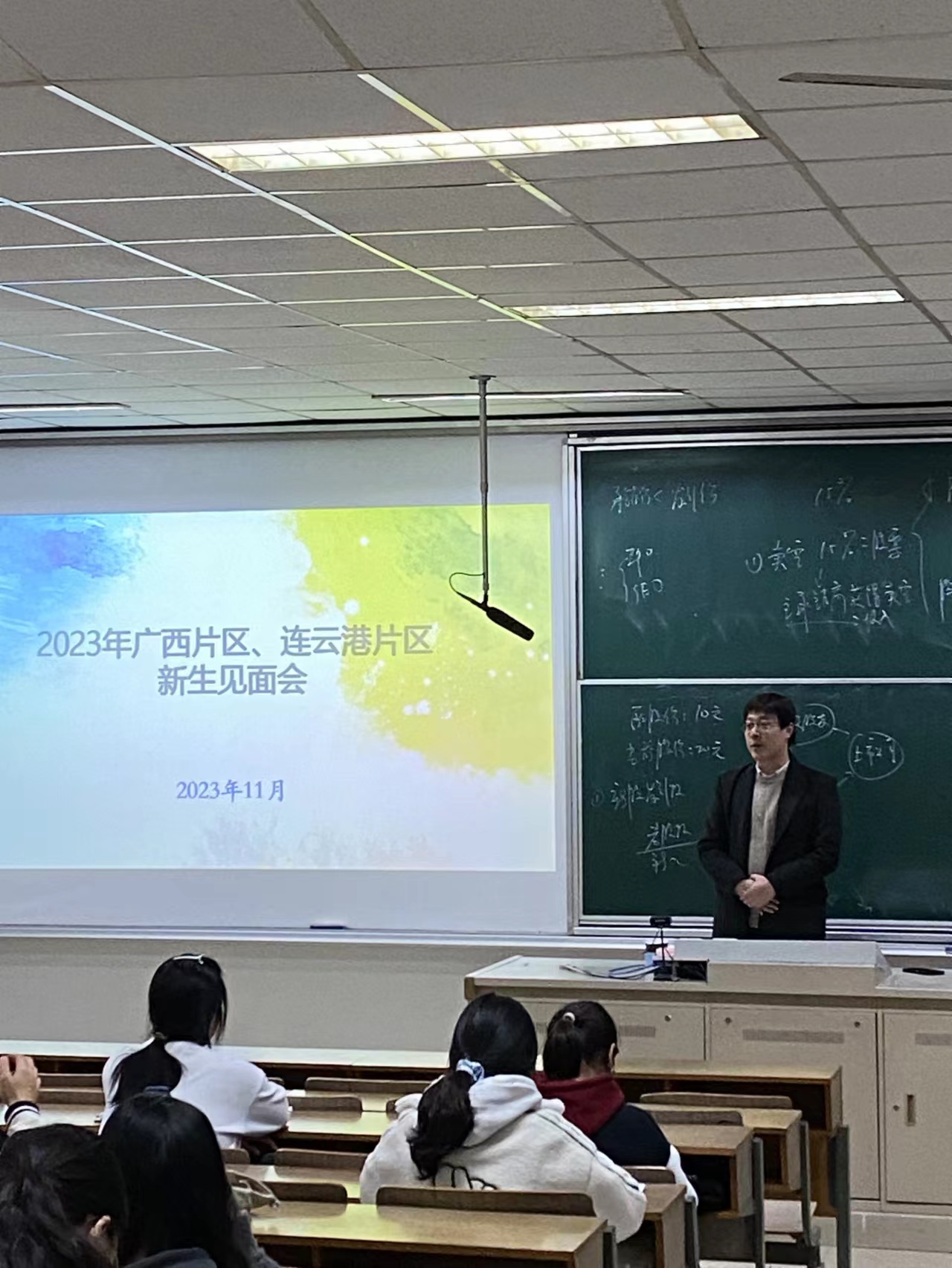 在德业楼117召开广西、连云港片区新生见面会,旨在培养新生们的爱校情怀和同乡情谊。学院学工办主任石晶晶老师主持此次活动。
