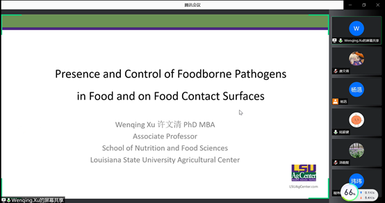 师生作了题为《Presence and Control of Foodborne Pathogens in Food and on Food Contact Surfaces》的线上学术报告。黄色导航