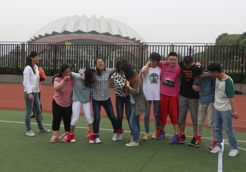 接下来是绑腿跑的比赛。趁着休息时间,每对都加紧练习,或统一口号调整步伐,或统一步伐加快速度,摔跤之后爬起来接着练,从一开始艰难的行进到之后行动自如,每一个队伍,每一个人都十分努力。正式开始比赛时,口号响亮,气势逼人,每一对都不甘落后,拼命向前。最终,食工1202班率先抵达终点,获得成功。