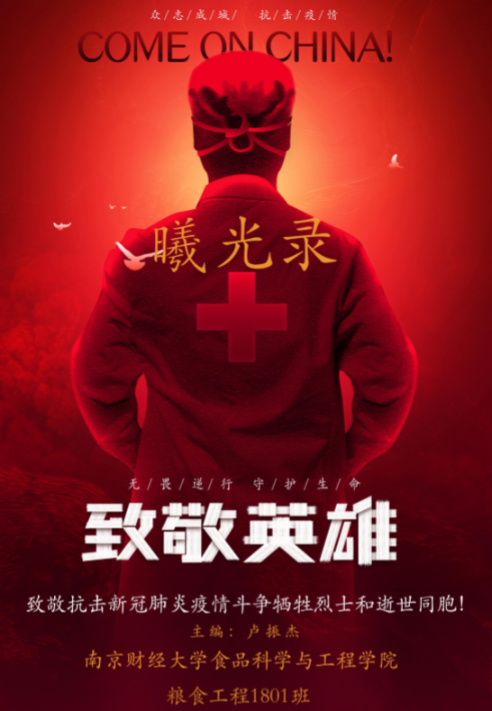 新冠疫情发生以来,全国上下同心战“疫”,抗击疫情英雄的逆行大爱、家国情怀、科研攻关、无私奉献精神,深深感动着每一位南财学子。为弘扬英雄精神和唱响时代主旋律,黄色导航