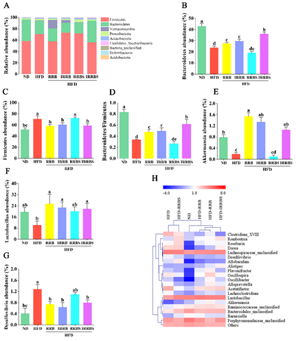 图2 米糠膳食干预对小鼠肠道菌群的调节作用