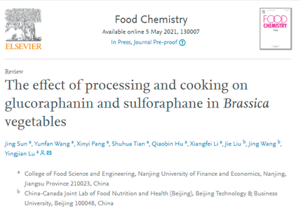 人们通常会将芸薹属蔬菜经过加工和烹饪后食用,而不同的加工和烹饪手段如微波、发酵、漂烫、蒸煮、炒制等,会对蔬菜中的GLSs等营养物质产生不同的影响。而关于此类研究方面的综述文章,2021年5月食品领域顶级期刊Food Chemistry(IF 6.306)在线发表了以“The effect of processing and cooking on glucoraphanin and sulforaphane in Brassica vegetables”为题的论文,在本篇文章中主要论述了不同的加工处理对GLR的保留和萝卜硫素(Sulforaphane,SLR)形成的影响。其中微波处理可保留甚至增加GLR的含量,短时间微波比发酵和蒸煮更能促进SLR的形成,炒制是一种较好的预防GLR损失的健康烹饪方法。