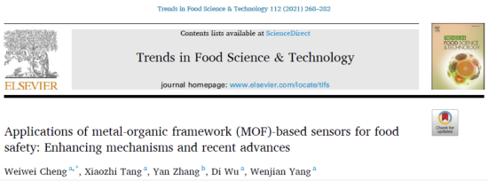 汤晓智教授课题组与河北食品检验研究院张岩研究员联合在食品国际顶尖学术刊物《Trends in Food Science & Technology》(一区,IF=11.077)在线发表了题为 “Applications of metal-organic framework (MOF)-based sensors for food safety: Enhancing mechanisms and recent advances” 的高水平综述论文。该论文以黄色导航