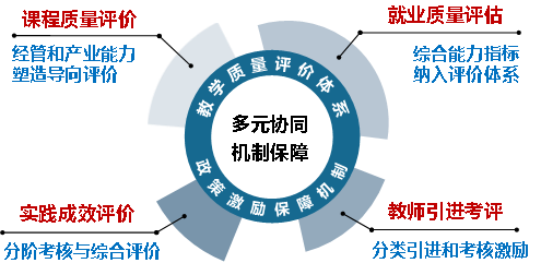 融合课程以经管和产业能力塑造为导向评价,考察学生评分、企业评价、团队自评、课程目标达成情况;实践成效分阶考核,一到三阶引入经管知识点考察,四到五阶考察包括经管和产业思维的学生综合素质;学生能力综合毕业目标达成、就业率、企业反馈和第三方评价考察,组织和管理、财务管理等综合能力指标纳入评价体系。