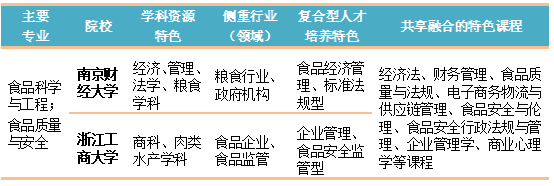 表1 两校食品科学与工程类复合型人才培养特色对比