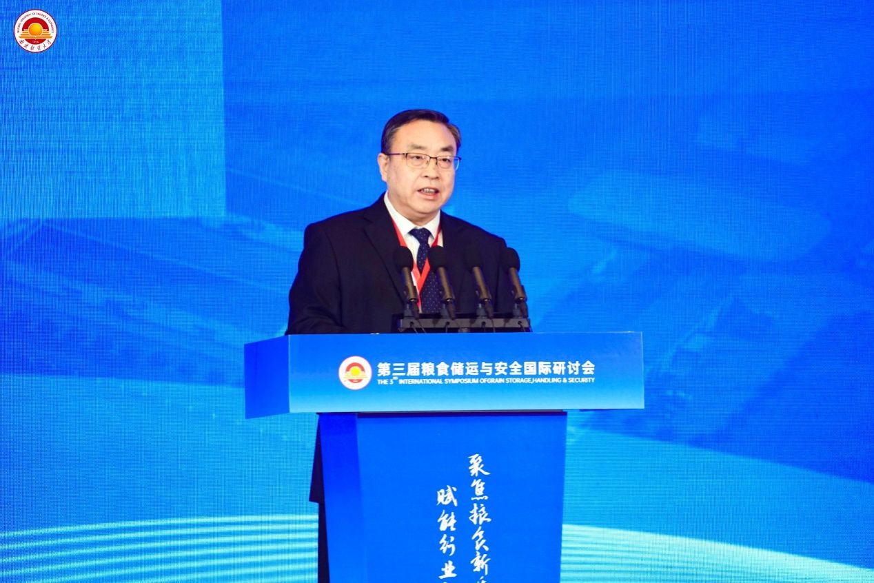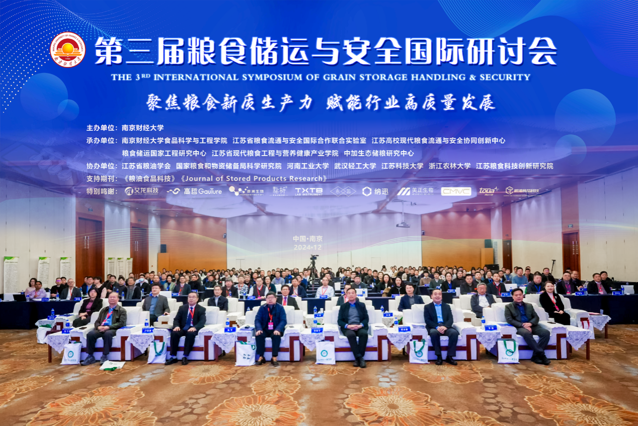 与江苏省粮食流通与安全国际联合实验室、江苏高校现代粮食流通与安全协同创新中心、粮食储运国家工程研究中心、江苏省现代粮食工程与营养健康产业学院、中加生态储粮研究中心等承办,江苏省粮油学会、国家粮食和物资储备局科学研究院、河南工业大学、武汉轻工大学、江苏科技大学、浙江农林大学、江苏粮食科技创新研究院等协办的第三届粮食储运与安全国际研讨会在南京举行。中国工程院院士、江南大学陈坚教授、金征宇教授,中国粮油学会理事长卢景波,原国家粮食局副局长吴子丹研究员,国际食品科学院院士、美国加州大学戴维斯分校Zhongli Pan教授,我校校长程永波,党委常委、副校长李煜出席会议。联合国世界粮食计划署、江苏省粮食和物资储备局、国家粮食和物资储备局江苏局、江苏省农业科学院、江苏省粮食集团有限责任公司、中储粮江苏分公司、中储粮江苏质检中心有限公司、江苏省江海粮油集团有限公司、江苏省粮油质量监测中心、江苏农垦米业集团有限责任公司、江苏省粮油学会等相关领导,我校科研处、国际合作与交流处、黄色导航